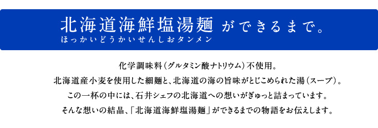 しかし、石井シェフは自身の料理人としての経験値とプライドに懸けて、化学調味料を使わない商品開発に踏み切りました。その理由は、「たくさんの人に、美味しく安全な北海道食材の味を知ってもらいたい」から。石井シェフは「北海道の力」を信じ、それをさらに広めたいと常に考えています。その想いを形にするべく、化学調味料を使わず、北海道食材の力強さや豊かな味わいを閉じ込めた「湯麺」の開発が始まったのです。